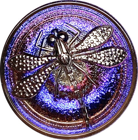 Purples/Blues/Magentas Dragonfly Czech Iridescent Glass Button, 22mm 7/8" #CZ 155