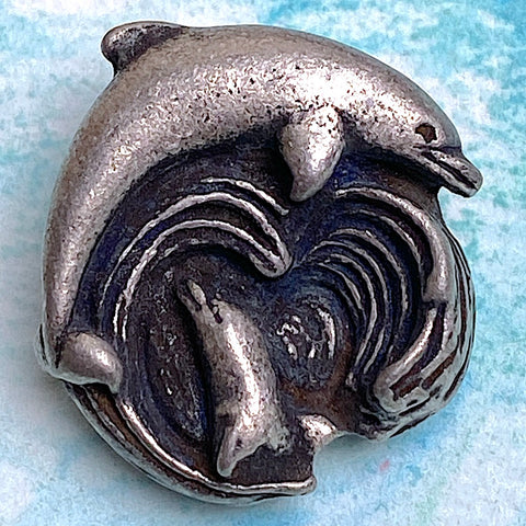 Re-Stocked, Pewter Dolphins Mom and Baby, 1" Shank Back Button 26mm USA-Made # SW-307