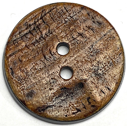 Brown Burnt Horn Rustic Wood-Look 1.25" Two-Hole Button #SK-0057