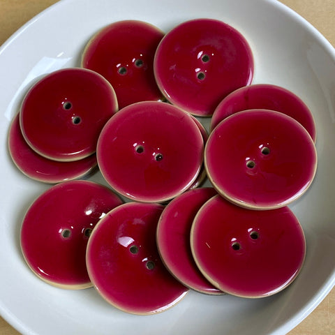 SALE, Larger Raspberry/Fuchsia/Hot Pink Shiny Coconut 1-9/16" Two-Hole Button 40mm #SK-1025