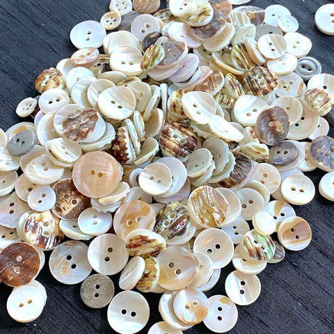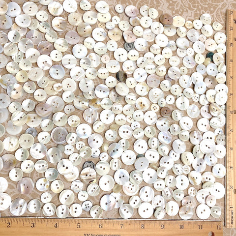 White Shell Stragglers, One Pound Mixed Sizes/Styles: 300+ Mother of Pearl Shell Buttons, $25.00