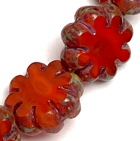 Red Daisy Beads, Czech Glass 9mm / 3/8" Strand of 25 BEADS #CZ-254