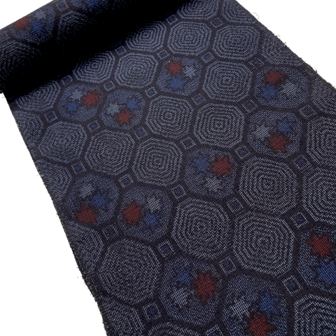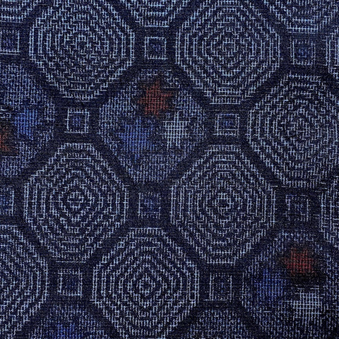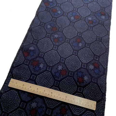 Octagons, Midnight/Blues/Black/Red Vintage Kimono Silk/Cotton Ikat Tsumugi from Japan By the Yard # 838