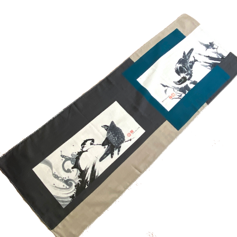 The print is up-and-down reading; so if the towel was hanging from a dowel in the center, each bird would read properly. Tenugui towel, lightweight 100% cotton, thin and light double gauze. Feels a bit like extra-soft cotton muslin. They are absorbent without being thick or truly fluffy, lightweight, quick drying, cuddly-soft and softer with time, easy to take anywhere. In Japan, Tenugui towels may be used as dish towels, scarves, napkins, souvenirs, wrapping cloths, placemats, trivets, bento wrapping, head bands, ear warmers, wall hangings, table runners, head wraps, aprons, cleaning and drying ceramics, art, jewelry, babies, other people and things... 100% Cotton. Japan. New not vintage.