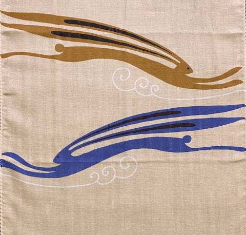 Wave Road, by Hiroshi Oishi. Tenugui towel, lightweight 100% cotton, thin and light double gauze that feels a bit like extra-soft cotton muslin. They are lightweight, quick-drying, cuddly-soft and softer with time, easy to take anywhere, absorbent without being too thick or fluffy. In Japan, Tenugui towels may be used as dish towels, scarves, napkins, souvenirs, wrapping cloths, placemats, trivets, bento wrapping, head bands, ear warmers, wall hangings, table runners, head wraps, aprons, cleaning and drying ceramics, art, jewelry, babies, other people and things... 100% Cotton. Japan. New not vintage.
