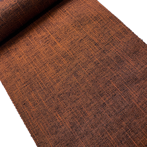 Rusty Black Smoke and Lightning, Extreme Orange Slubs Tsumugi Vintage Kimono Silk from Japan By the Yard #318