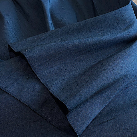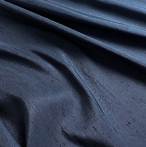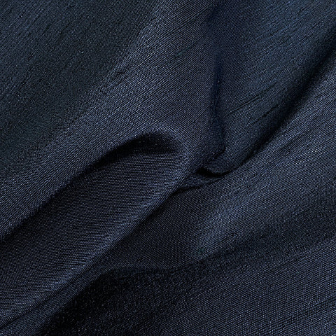 Solid Dark Indigo Blue/Black Slubby Lustrous Dupioni-Like Vintage Kimono Silk from Japan, By the Yard # 301