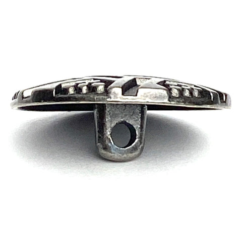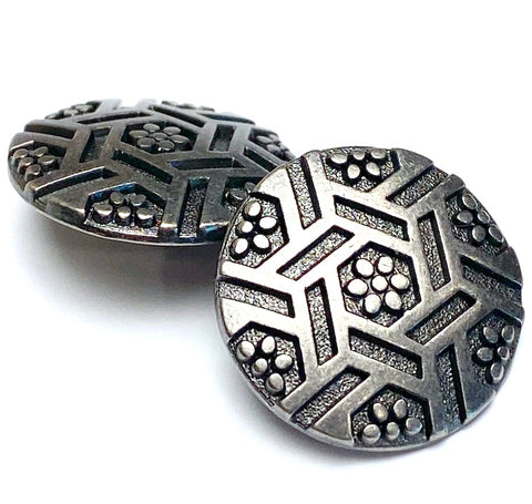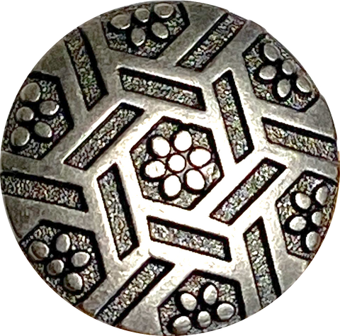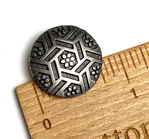 Flowers & Hexagons 13/16" Gunmetal Dark-ish Silver Shank Back Button #SWC-26