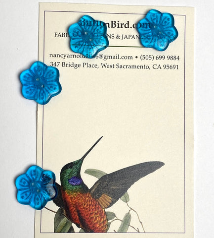 Blue Vintage Glass Flower-Shape Button 3/4" Pack of TWO #OT-121