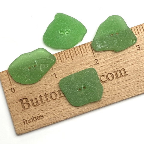 Set of Four Green Real Sea Glass Buttons Approximately 1" # BCH-131