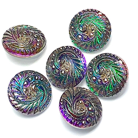 Impossibly Beautiful Smaller Czech Glass Swirl Button 18mm / 11/16" #CZ-240