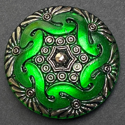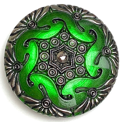 Running Low, Dark Green Large Handpainted Czech Glass Button, 1-5/8", Susan Clarke #SC-885 E