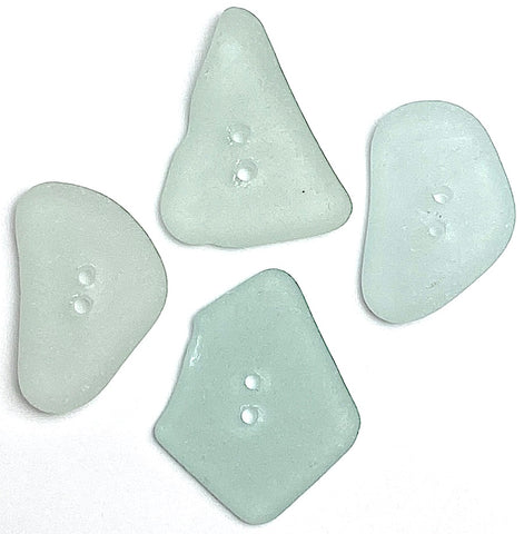 Glass that had tumbled for years in the ocean before being found on the beach and made into buttons. Soft edges, natural shapes, translucent, smooth, with frosty patinas from salt water and friction, in various shapes and sizes. Two holes about 1.5mm. You'll receive the exact buttons shown. True sea glass, gathered and drilled in the US.