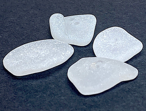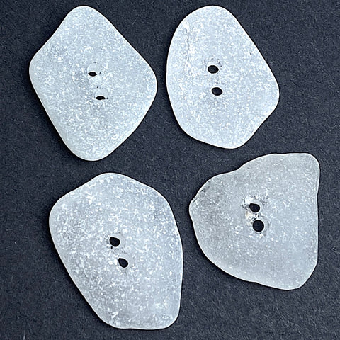 Set of Four White Speckly Genuine Sea Glass Buttons 1" # BCH-129