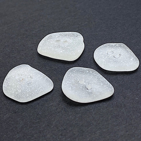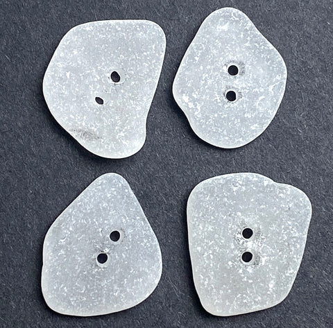 Set of Four White Speckly Genuine Sea Glass Buttons 7/8"- 1" # BCH-130