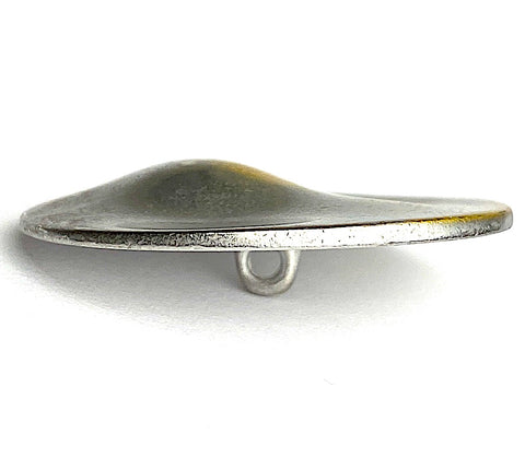 Asymmetrical Silver-Gold Flying Saucer 1-1/2" /38mm Oval-ish Metal Button #SK-942