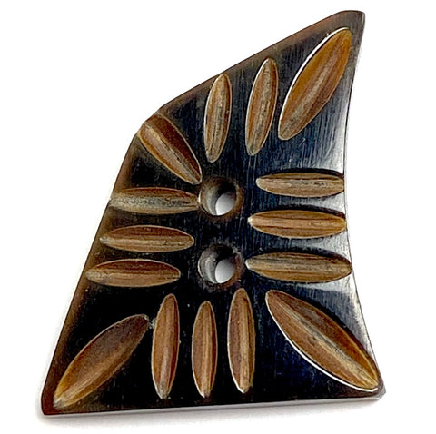 Black / Brown Curvy Sail, Grooved Horn Button 1-1/2" Smaller Size, #SK-0712