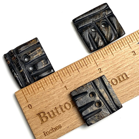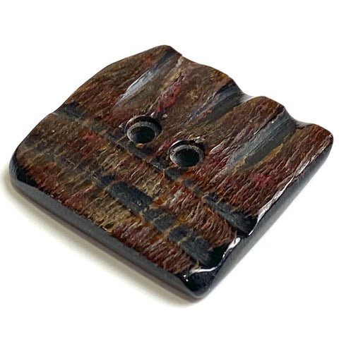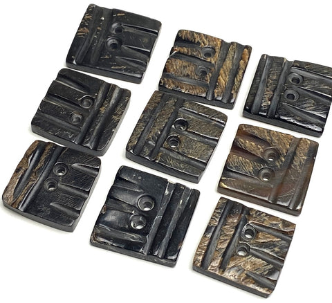 Black / Brown Five Rustic Grooves Square-ish Horn Button 1" Two Holes, #SK-0052