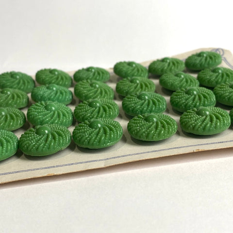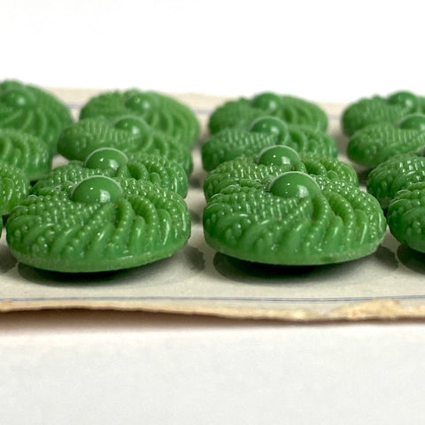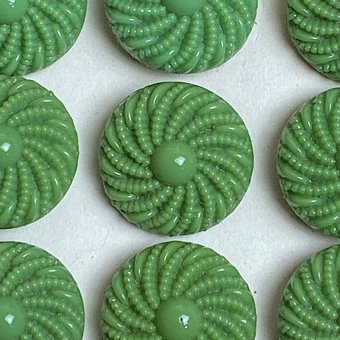 Green Vintage Glass Textured Swirl 3/4" Buttons, European New Old Stock, #BK-914