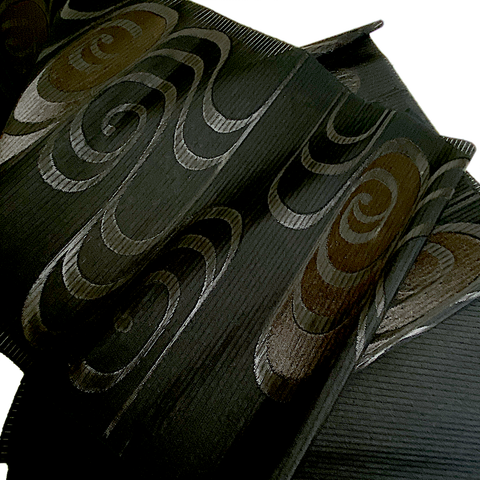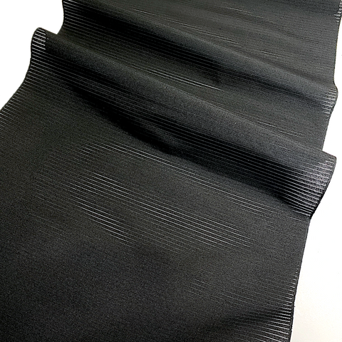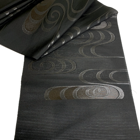 5 yards Vintage Obi Silk from Japan: Black Shiny Swirls on Sheer Featherweight Stripe, Unusual, Light #226