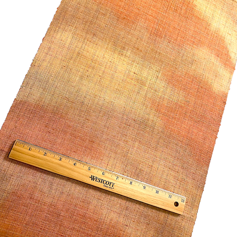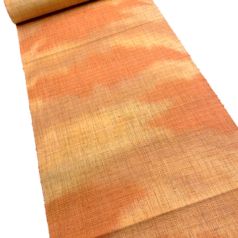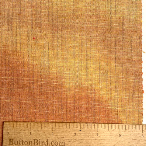 Soft, light and thin, with subtle slubby texture from the weave, pure silk with cloudlike soft butternut orange-red blending to golden pear/mustard tones. Along the way and depending on the light, there may be hints of pale greenish yellow. In the background there are fine gray, blue and wine coming-and-going single-thread stripes through the length. Both sides are the same or so close we can't tell the difference. This silk is almost crisp, not drapey or shiny, and a bit supple but not flowy. There are labels, but it looks and feels just like certified 'pure silk pongee weave Tsumugi'. 14" wide, sold by the full yard and we'll cut yours in one piece from the beautiful condition, unused vintage bolt. 100% Silk. Japan. Exquisite.