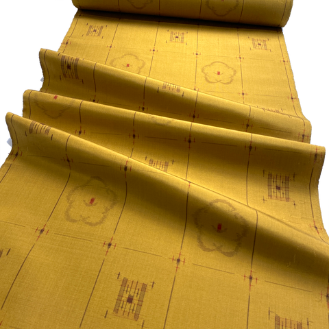 Ochre Dijon Turmeric Ikat, Vintage Kimono Silk from Japan By the Yard #228
