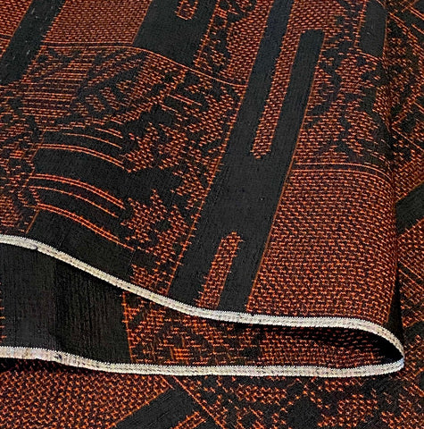 Red-Orange + Black Complex Ikat Vintage Kimono Silk from Japan By the Yard #220
