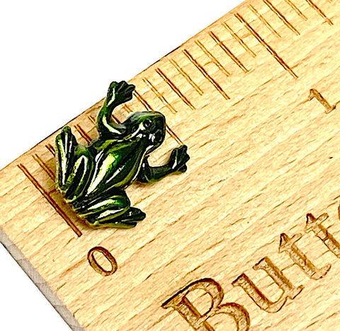 Running Low, Tiny Frog Button, Green Artisan Enamel Metal 1/2" from Susan Clarke #744