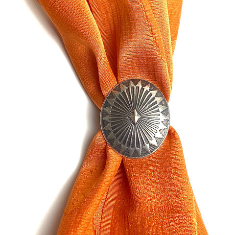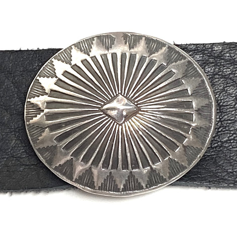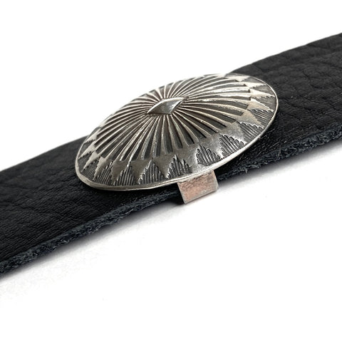 STERLING Silver Oval 'Taos Mountain' 1-3/8" x 1-1/8" Concho w. BELT SLIDE #SW-431