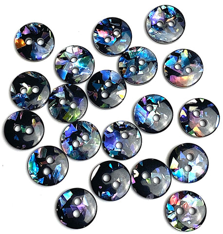 Sparkly 'Abalone' Confetti Shiny Black 2-Hole Vintage Button 7/16" / 11mm Pack of 20 KB-950