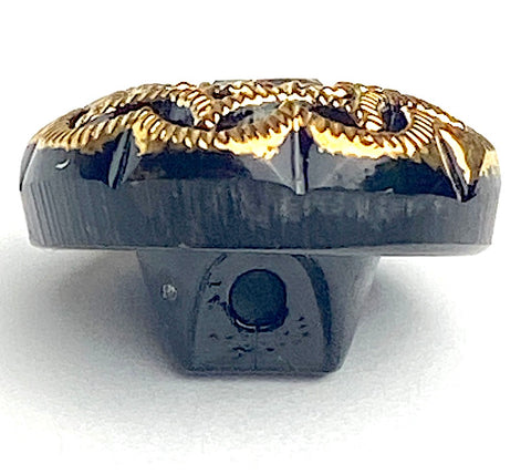 Black/Gold/Rhinestone Small Czech Glass Button 13mm 1/2" # CZ-176