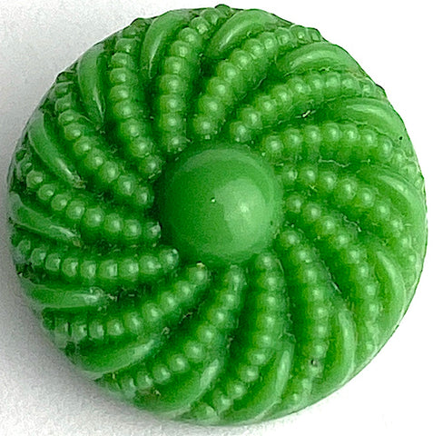 Green Vintage Glass Textured Swirl 3/4" Button, European New Old Stock, Per Button, #BK-914