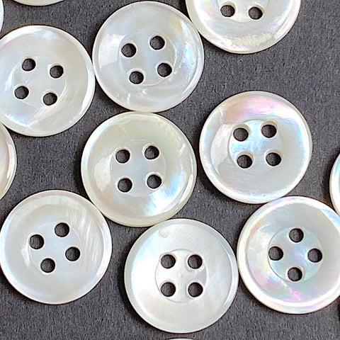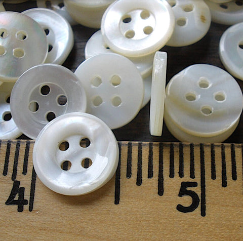 Re-Stocked, White 4-Hole 1/2" Pearl Buttons, Vintage Shell 13mm, Pack of 12 #KB-801