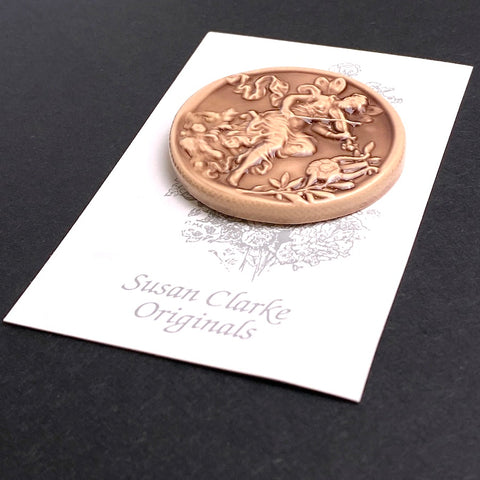 Running Low, Musical Fairy w. Violin, Large Art Stone Button, 1-3/4" From Susan Clarke Originals