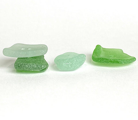 Set of Four Mixed Greens Sea Glass Buttons Approximately 1" # BCH-123