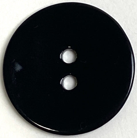 Agoya Shell button with very consistent rich true black color. Very shiny, excellent quality; clearly these aren't plastic buttons.  Smooth and sleek, with just a bit of natural variance since they are real shell. They look delicate but are strong, and will wear well.  7/8" /23mm diameter,  2 holes about 2.25mm.