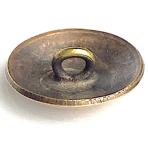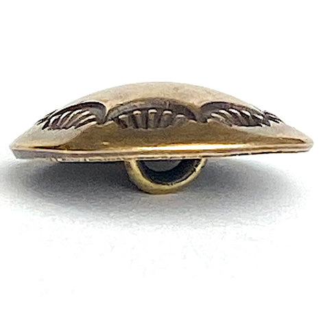 Traditional Concho button made and finished by hand, in New Mexico. Best quality, small shiny rosy-gold toned brass Southwest Concho button. 1/2" diameter, domed, about 1/2" thick including the loop shank on the back, which has an opening of about 2mm.