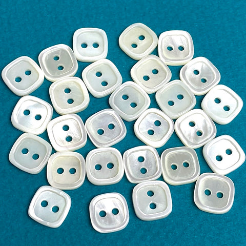 New Markdown, Square Itty Bitties 5/16" White MOP Shell 8mm Real Pearl Button. Pack of FOUR #SK-690