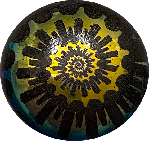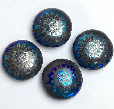 Jet Black Rainbow Beads, Ammonite Swirl, Czech Glass 13/16" / 20mm, Pack of 4 Beads #L-492