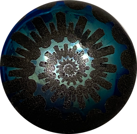 Not traditional Czech Glass, it's laser-etched, iridescent black with teals, blues, greens, and yet more black. Smooth and sleek, the color seems to shine from within as well as from the surface. Plump, lustrous, glowing and glimmering, each one unique, colors moving, round and rounded, "puff coin" shape, about 1/4" thick, with .75mm holes. Both sides are the same silky-soft surface, shiny, dark and sometimes bright. Some are predominantly mysterious, glowing black. New, from Czech Republic. Sold per set of four beads.