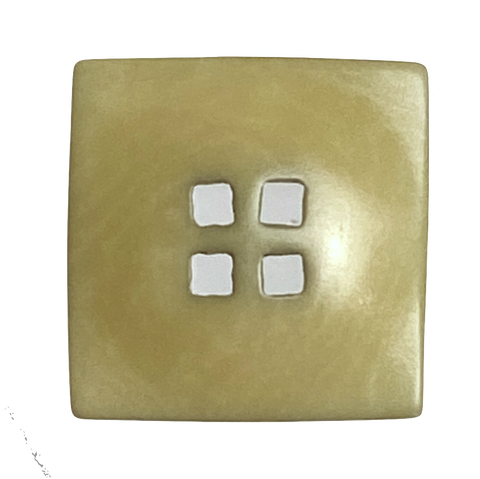 Square button with four square holes. It's almost 1/8" thick and slightly raised - 'pillowed' in the center, on the front side. The back is flat. Silky finish with a bit of sheen, from sustainable corozo/tagua nut. Sold per button.