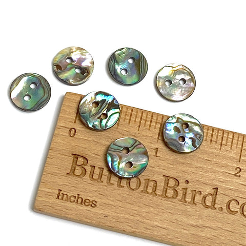 Re-Stocked, EIGHT Abalone 1/2" Vivid Greens/Blues Buttons 13mm, Pack of 8 #SK-0033