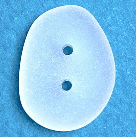 Frosty, translucent recycled glass buttons that have been tumbled, so they look like seaglass. Smooth, rounded, silky-surfaced buttons with quite consistent color. See the photos for possible variance in the soft, non-symmetrical shapes. They are about 3/4" - 7/8" long the long way, about 3/16" thick with two 1.5mm holes.