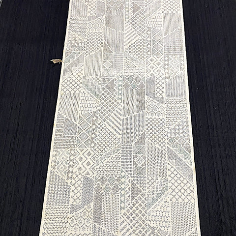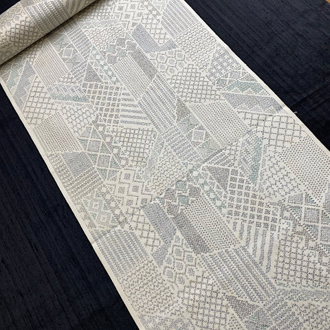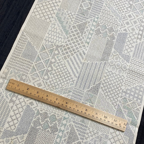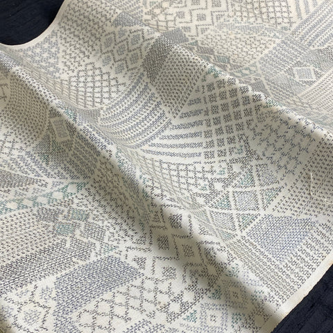 Off-White/Gray Ikat, "Sampler" Faux Patchwork Vintage Silk Tsumugi Pongee from Japan By the Yard #253